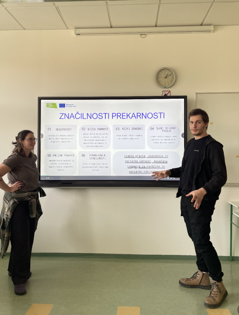 V četrtek, 12. marca, in v četrtek, 19. marca 2026, smo na Višji ekonomski šoli Novo mesto izvedli usposabljanje Skupaj proti prekarnosti, v sklopu katerega smo študentom_kam prvega letnika ekonomije in medijske tehnike približali izzive prekarnosti.